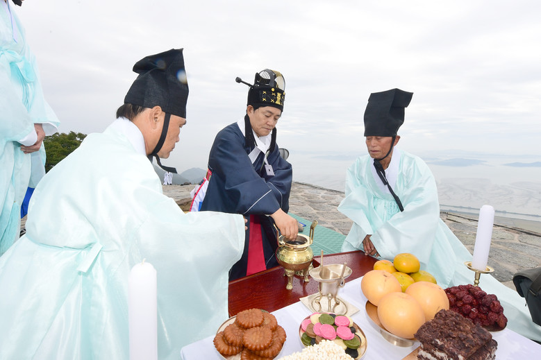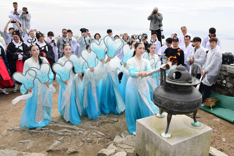 마니산 참성단 정기 받아 부산광역시로 출발 [강화군 세계타임즈=심하린 기자] 강화군(군수 박용철)은 3일 마니산 참성단에서 ‘제4357주년 개천대제 봉행’과 ‘제106회 전국체육대회 성화 채화식’을 개최했다.