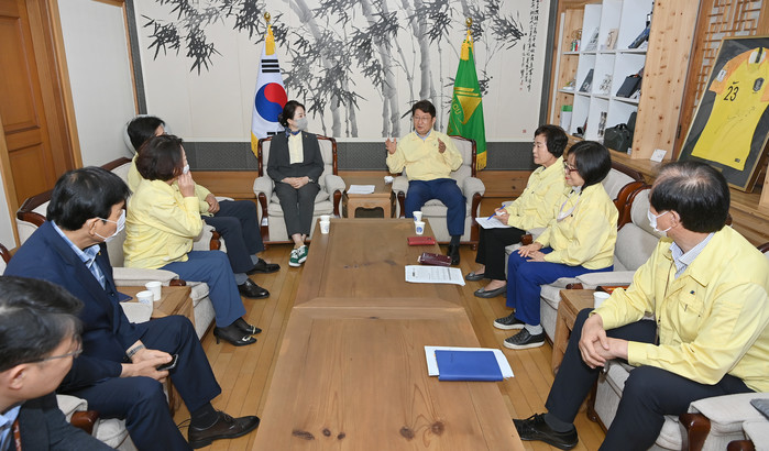 [대구=세계타임즈 한성국 기자] 달서구에 지역구를 둔 대구시의회 송영헌 의원 등 6명은 24일(금) 오후 4시에 대구시장을 예방하여 간담회를 갖고, 정부에서 추진 중인 대구산업선의 호림역 추가 설치를 강력히 촉구하는 내용을 건의했다.