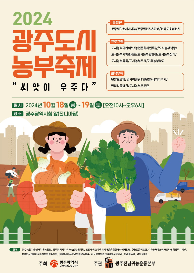 이번 도시농부 어울림 한마당은 광주시가 주최하고 광주전남귀농운동부에서 주관한다.