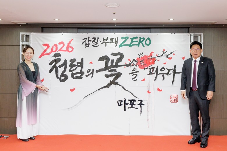 행사에서는 ‘갑질·부패 ZERO, 2026 청렴의 꽃을 피우다’라는 문구를 주제로 한 청렴 캘리그래피 대붓 퍼포먼스도 함께 진행됐다.