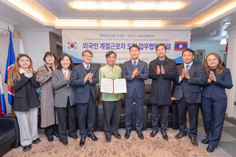 [고성군 세계타임즈=김민석 기자] 고성군(군수 함명준)은 농촌의 초고령화로 농작물 파종기, 수확기에 절대적으로 부족한 인력난 해소를 위해 2월 21(금) 오후 2시 서울 용산구 한남동에 위치한 주한 라오스 대사관을 방문하여 외국인 계절근로자 도입을 위한 고성군과 라오스 간 업무협약 체결을 추진했다.