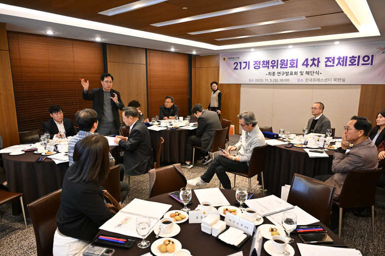 서울특별시의회 21기 정책위원회는 지난 ’25. 1. 9. 자로 시의원 17명과 각계 전문가 13명 등 30명으로 위촉·구성하면서 정식으로 출범하여 ’25.11.28 자로 임기를 종료하게 된다.