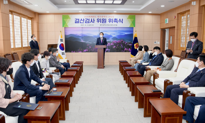 김용집 의장은 결산검사위원들에게 “지난 해 녹록치 않은 재정여건에서도 코로나19와 집중호우에서 시민의 안전 보호와 지역경제 침체 완화, 학생들의 학습권을 지키기 위해 9조원이 넘는 광주시와 시교육청의 2020년 예산을 편성했었다”며 “어렵게 마련했던 2020년 예산이 작년 한 해 동안 올바르게 사용되었는지 꼼꼼히 살펴주시길 부탁드린다"고 당부했다.
