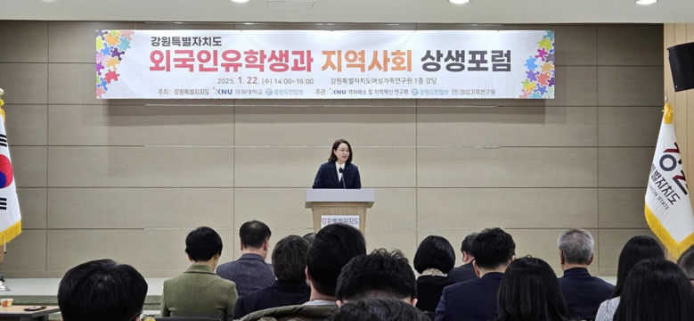 [강원도 세계타임즈=김민석 기자] 강원특별자치도여성가족연구원(원장 김숙영)은 강원대학교, 강원도민일보와 공동으로 2025년 1월 22일(수) ‘강원특별자치도 외국인 유학생과 지역사회 상생 포럼’을 개최했다.