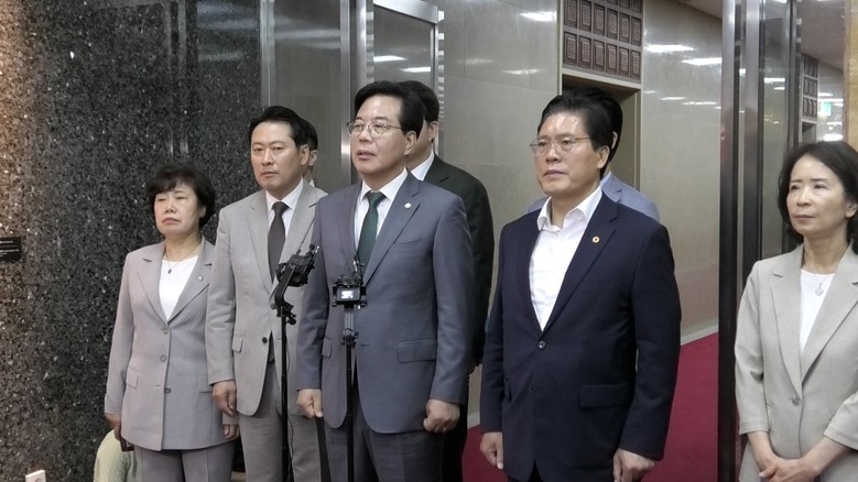 송언석 원내대표 겸 비상대책위원장은 국회 법제사법위원회 소속 의원들과 함께 우 의장을 찾아 면담을 진행했다. 면담 후 송 원내대표는 기자들과 만나 “무책임한 영장 청구가 남발되고 있다”며 “국회의장으로서 수사기관과 법원에 신중한 태도를 요구해 달라고 요청했다”고 밝혔다.