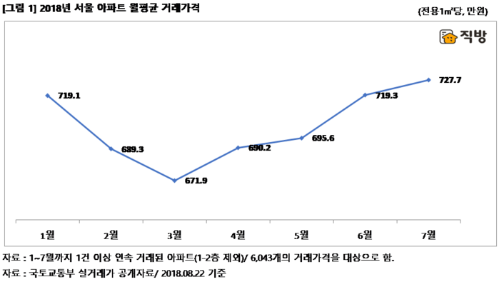 [세계타임즈 심귀영 기자]부동산정보서비스 ㈜직방(대표 안성우)이 국토교통부 아파트 매매 실거래가를 분석한 결과, 양도소득세 중과를 앞두고 3월 낮아졌던 거래가격이 회복하면서 넉 달 새 서울 아파트값은 8.3% 상승한 것으로 나타났다.