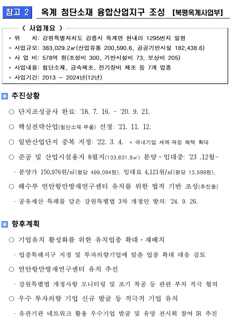 □ 옥계지구 맞춤형 분양·임대 전략으로 기업 입지 부담 완화