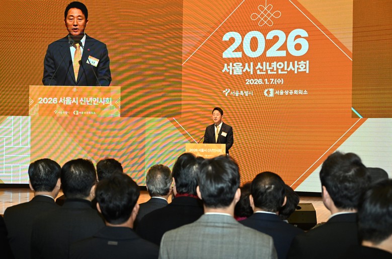 [서울 세계타임즈=이장성 기자] 오세훈 서울시장은 7일(수) 오전 10시 대한상공회의소 국제회의장(중구 세종대로39)에서 열린 ‘2026년 서울시 신년인사회’에 참석해 정‧관‧재계 인사들과 병오년(丙午年) 새해 인사를 나눴다.