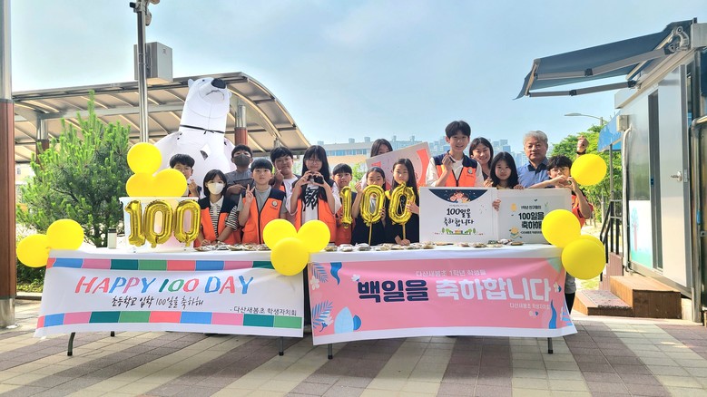 이번 행사는 작년에 이어 학생자치회 선배들이 귀엽고 소중한 1학년 후배들을 축하하기 위하여 자발적으로 마련한 행사이다. 초등학교에 첫발을 내딛은지 100일을 맞아 노란 단체티를 입고 등교하는 1학년 학생들은 교문을 들어서며 눈이 휘둥그레졌다. 환한 웃음으로 축하 인사를 건네는 교장 선생님, 하얀 북극곰 에어 슈트에 들어가 익살스러운 동작으로 반겨주는 체육 선생님, 정성껏 포장한 간식을 전해주는 학생자치회 선배들, 축하 플래카드와 응원 피켓까지 준비한 사람들의 따뜻함이 느껴지는 등굣길이었다.