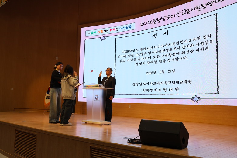 [아산시 세계타임즈=이현진 기자] 충청남도아산교육지원청(교육장 신세균)은 지난 21일(토) 충청남도교육청과학교육원에서 신입생 및 학부모, 영재교육 담당강사 등 500여명이 참석한 가운데 2026학년도 아산교육지원청영재교육원 입학식을 개최했다.