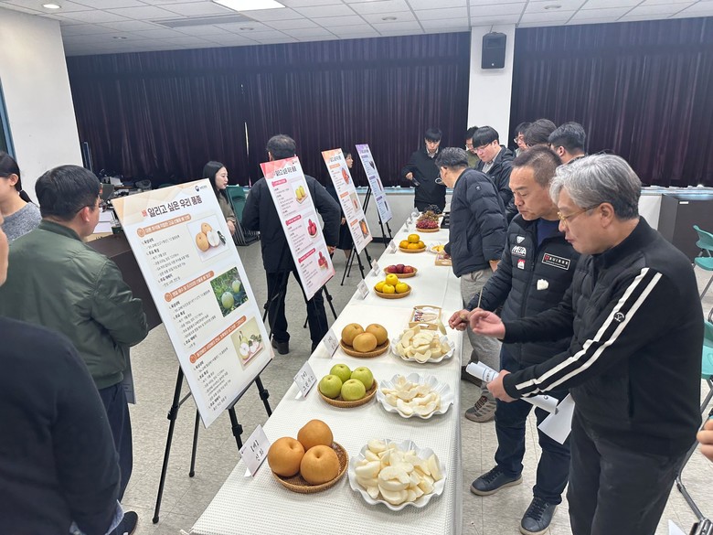 참석자들은 품종별 숙기, 당도, 저장성 등 주요 특징과 출하시기, 포장재 등 유통 정보를 안내받고, 신품종을 직접 시식하며 품평을 진행했다.