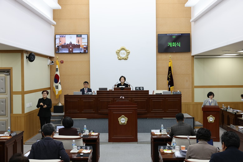 이해양 의장은 개회사를 통해 “무주군의회는 2024년, 침체된 경기와 민생의 회복에 집중하고 위기를 극복해 나가는 일에 매진할 것”이라며“특별히 올해 한국농어촌공사 무진장지사 무주지소가 개소하게 된 것처럼 의회의 성과를 바탕으로 올 한해 군민의 삶이 더 나아지고, 무주가 한단계 도약할 수 있도록 노력해 나갈 것”이라고 말했다.