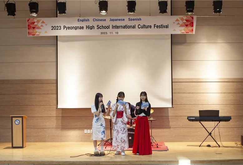 11월 10일에는 경기미래교육 학교자율과제‘학생 맞춤형 외국어 교육’의 산출물 발표로‘국제문화 페스티벌’을 개최하였다. 영어, 중국어, 일본어, 스페인어로 외국어 프리젠테이션, 외국어 노래 부르기 및 밴드 공연, 리믹스한 외국 노래 댄스 공연 등 다채로운 프로그램을 통하여 전교생이 외국어를 활용하는 즐거운 시간이었다.