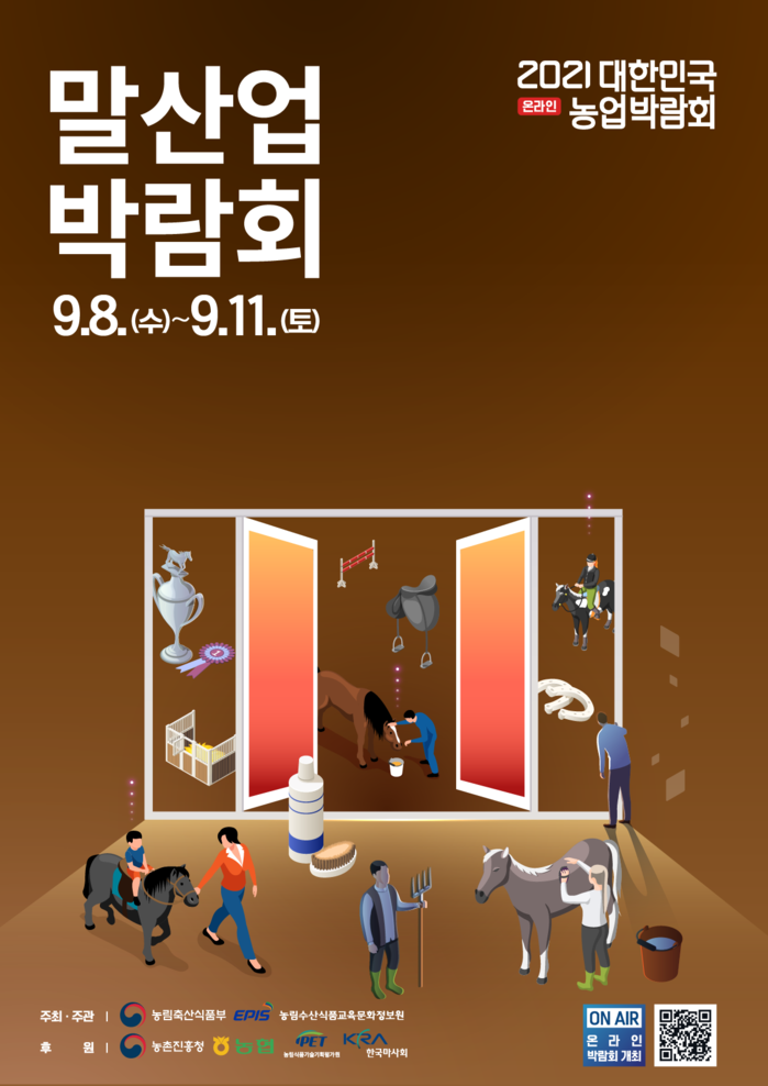 [세계타임즈 심하린 기자]한국마사회가 2021년 대한민국 농업박람회와 연계한 온라인 말산업박람회를 9월 8일부터 11일 까지 운영한다. 코로나19로 인한 대면접촉 제한으로 국민들의 각종 말산업 참여 기회가 제한됨에 따라 온라인 박람회를 개최하여 말산업에 대한 관심을 꾸준히 불러일으키기 위함이다.