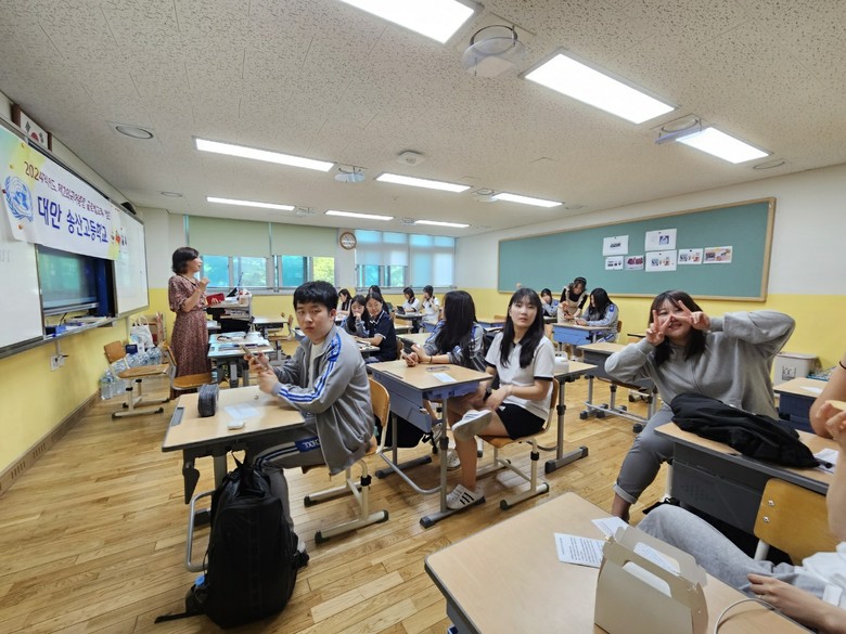[세종 세계타임즈=이채봉 기자] 소담고등학교(교장 문민식, 이하 소담고)는 제2외국어 중점 학교로서 5월 31일과 6월 7일, 두 차례에 걸쳐 교내에서 대만 송산고등학교와 함께 화상으로 “글로벌 교류캠프‘’(이하 교류캠프)를 실시했다.