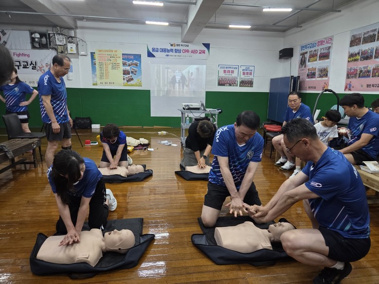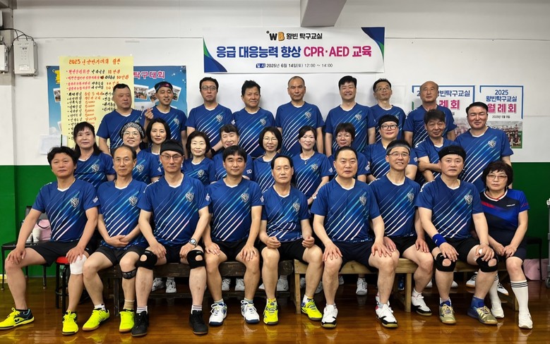 [세계타임즈]최성룡기자 = 이재란 (창원시 탁구협회 부회장)은 지난 14일 오후 12시부터 신월동 왕빈탁구 교실에서 회원과 지역주민을 대상으로 김성용 전문강사 (대한산업안전협회 창원지회장)를 초빙 CPR.AED 교육을 실시하였다.