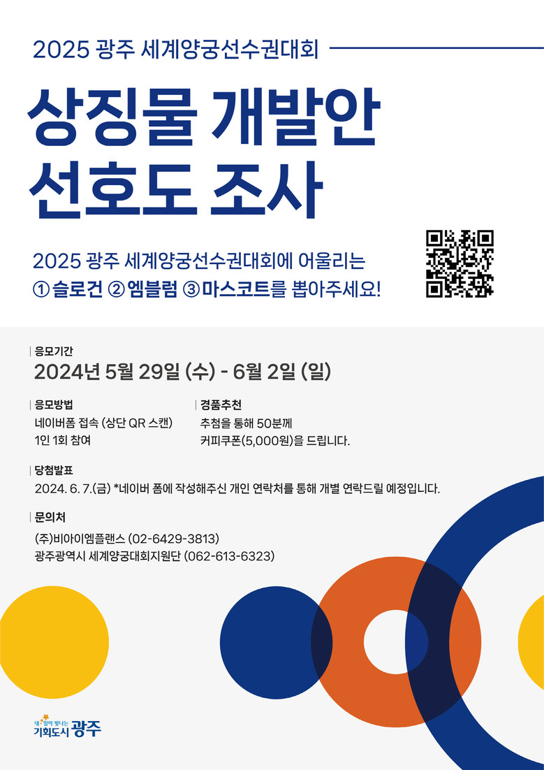광주시는 이번 선호도 조사를 거쳐 세계양궁선수권대회의 가치와 광주의 도시 정체성 및 브랜드 등이 담긴 상징물을 확정할 예정이다.