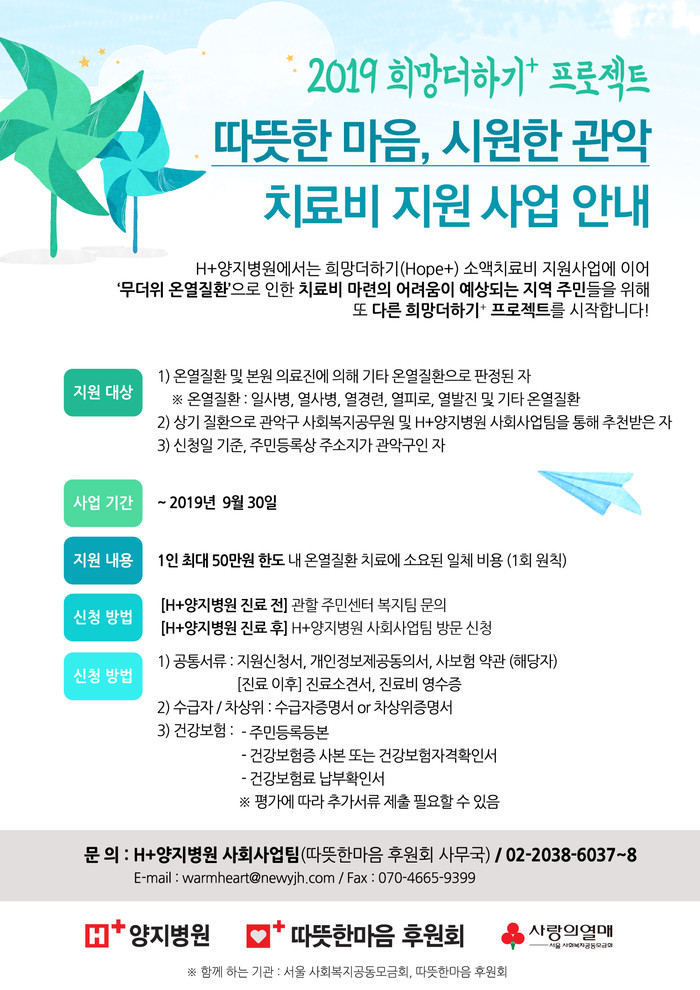 ◆ H+양지병원, 온열질환 취약계층 대상으로 1인 최대 50만원의 치료비 지원 사업 전개