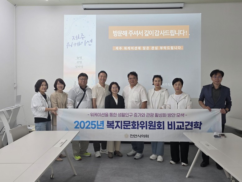 이번 견학은 천안시가 충남도와 함께 추진 중인 ‘충남워케이션’ 사업과 관련하여, 선도적인 정책사례를 보유한 제주도의 워케이션 운영방식과 성과를 벤치마킹하고자 마련됐다. 특히 제주도는 워케이션 분야에서 2년 연속 ‘국가서비스대상’을 수상하며 체계적인 시스템과 지역경제 연계 효과를 인정받고 있는 대표 사례로 꼽힌다.