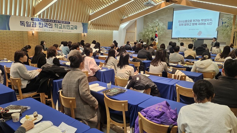 이번 연수는 ‘2025 국제교류 기반 학교민주시민교육 교사아카데미’의 일환으로, 지난 7월 독일에서 민주시민교육을 탐구한 교사들이 연구 결과를 담은 『독일과 한국의 학교시민교육-세 번째 이야기』를 바탕으로 진행됐다.