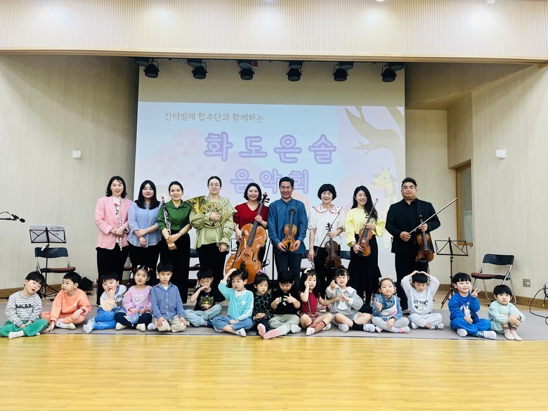 4월 30일에 열린 ‘즐겁게 노래해요! 학부모 재능기부 클래식 음악회’는 ‘친구와 함께 공연 관람하기’를 주제로 예솔반의 학부모가 재능기부를 통해 멋진 클래식 공연을 선사하였다. ‘바이올린, 플루트, 클라리넷, 첼로, 호른, 바이올린, 피아노’의 악기로 구성된 9명의 ‘칸타빌레 합주단’은 ‘Libertango’와 ‘사랑의 인사’의 클래식 곡과 함께 ‘깊은 밤을 날아서’를 클래식 버전으로 연주해주었으며, 각 악기를 소개하고 악기의 음색을 들려주어 유아들에게 새로운 경험의 장을 열어주었다.