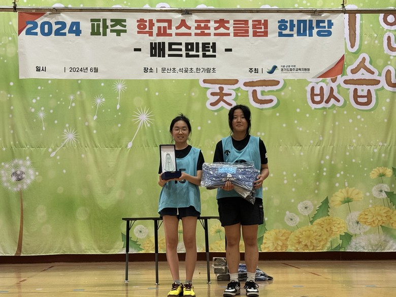 여자 배드민턴대회는 석곶초에서 6월 14일에 예선리그에서 산내초와 석곶초를 큰 점수차로 모두 이기고 1위로 결승리그에 올랐으며, 지난 6월 28일에 문산초에서 열린 여자배드민턴에서는 문산초를 이기고 결승에 진출하여 우승하였다.