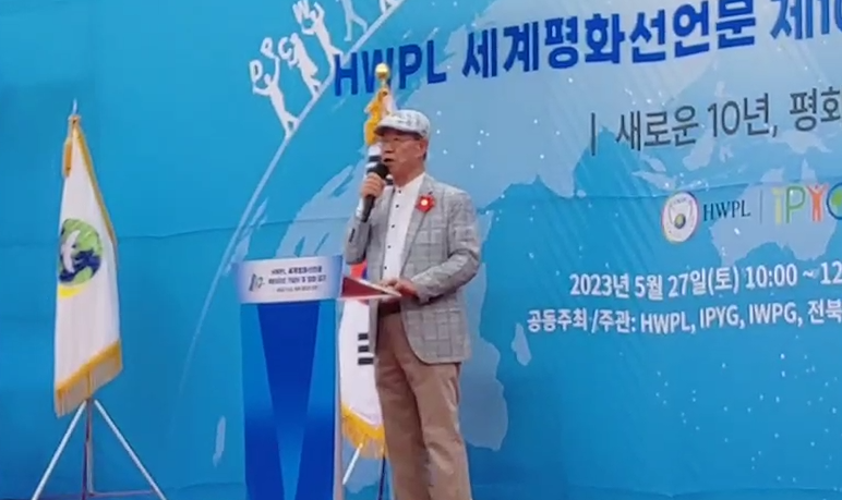 HWPL 이만희 대표는 지난 25일 행사에서 자신이 6.25 한국전쟁에 참전해 최전방에서 직접 겪은 참혹한 전쟁의 비극, 전쟁 후 폐허가 된 과거 대한민국의 모습을 상기하며 평화의 중요성을 설명했다.