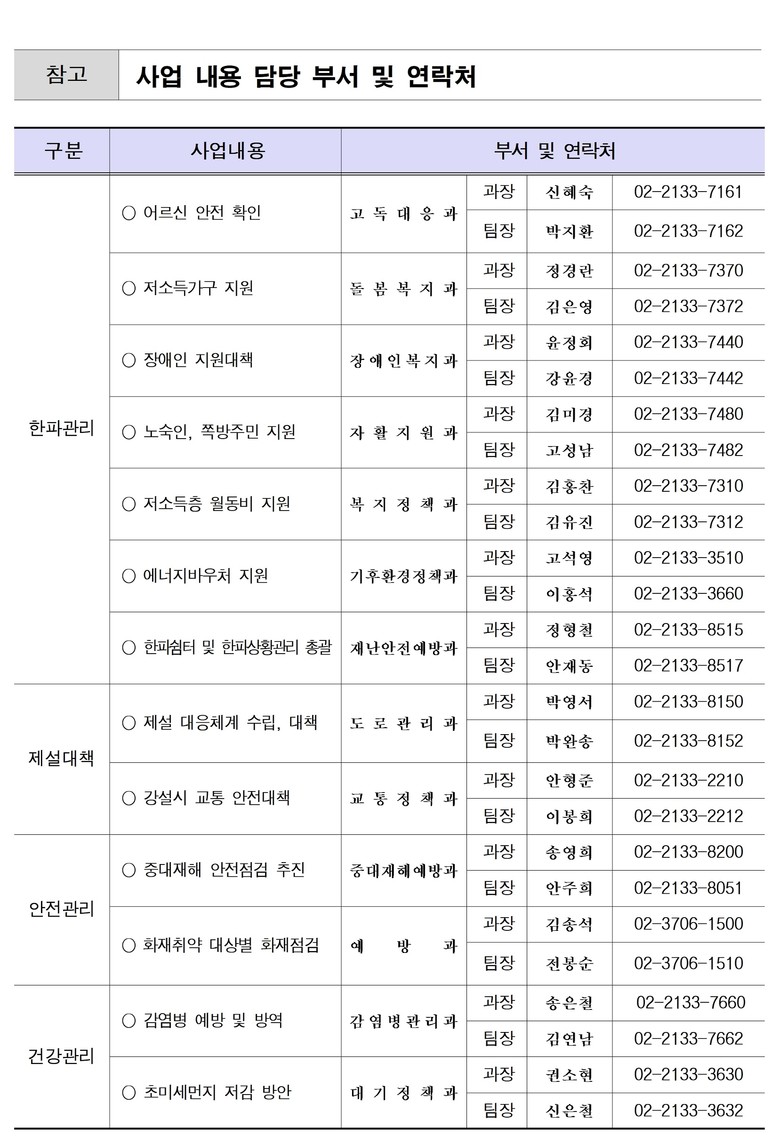 <(한파)노숙인‧쪽방주민 등 한파약자 밀착지원…다양한 한파 대피공간 마련, 상수도 동파 대응>
