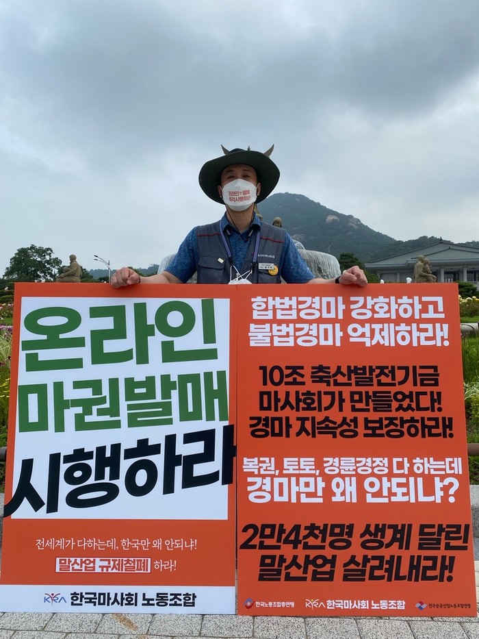 따라서 지난 7일부터 한국마사회 노동조합이 주도하는 1인 피켓팅 시위가 국회 앞에서 시작됐다. 한국마사회 노조는 포스트 코로나19 이후에도 산업과 종사자, 이용자들을 보호할 수 있도록 경마산업과 말산업에 대한 디지털 전환 정책을 촉구하고 있다.