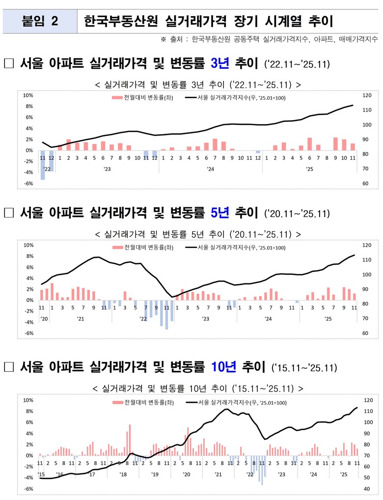 11월 실거래가격지수는 2025년 11월 1일부터 30일까지 체결된 매매계약 중 부동산 거래신고 등에 관한 법률에 따라 계약체결일로부터 30일 이내 신고가 완료된 실거래 자료 전수를 분석해 산출했다.