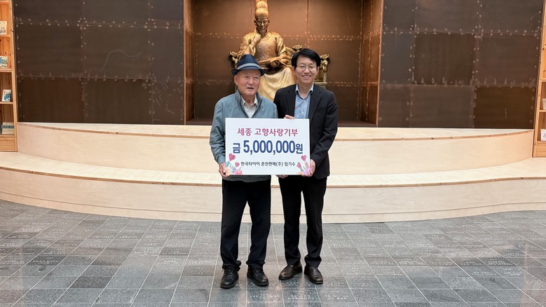 [세종 세계타임즈=이채봉 기자] 세종특별자치시(시장 최민호)는 임기수 한국타이어 춘천판매㈜ 회장이 19일 시청에서 고향사랑기부금 300만 원을 기부했다고 밝혔다.