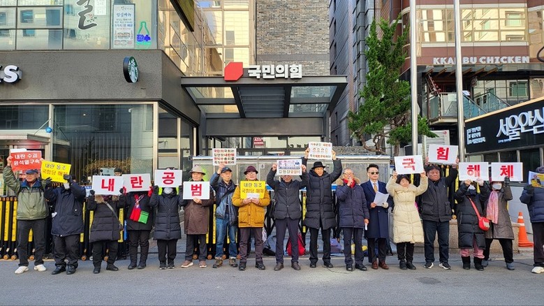 이에 앞서 김선홍 ‘행·의정감시네트워크중앙회’장이 발표한 경과보고에 따르면, “지난 3일 밤 10시 25분쯤 윤석열 대통령이 선포한 비상계엄은 자신에 반대하는 모든 사람을 반국가세력으로 처단하겠다는 위헌, 불법 친위쿠데타”로서 “추경호 국힘 원내대표는 자당 소속 의원에게 메시지를 날려 당사로 가라고 유도하여 표결을 지연시키는 등 조직적으로 내란을 방조”했다.