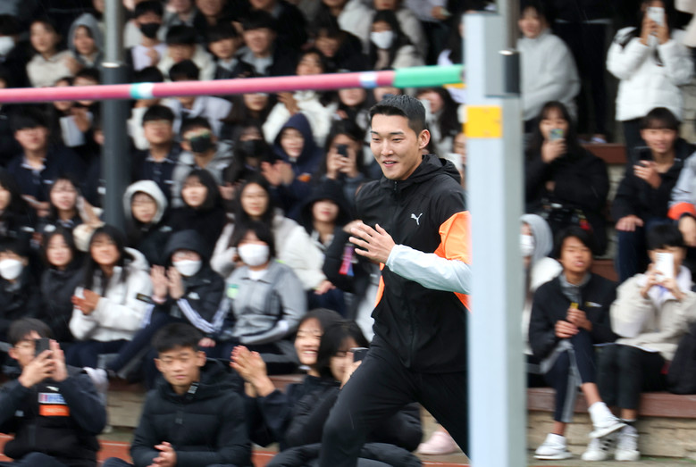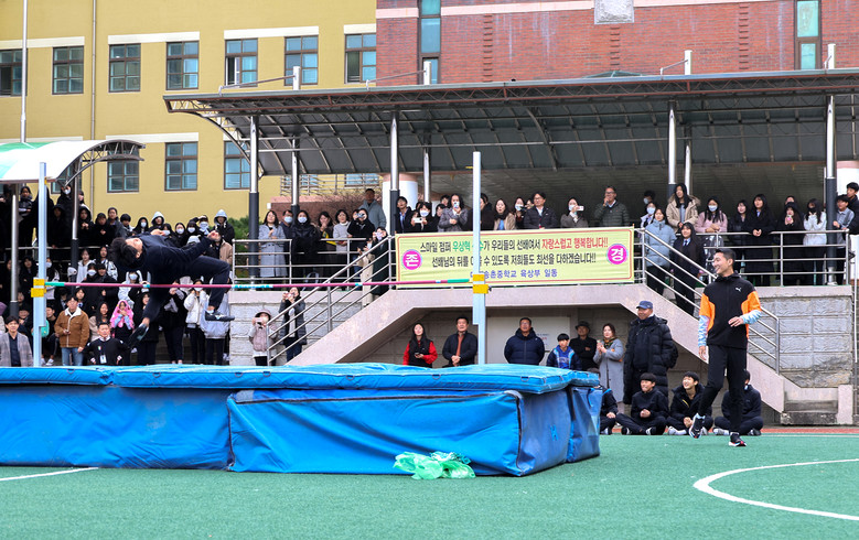 우상혁 선수의 높이뛰기 시범을 관람한 3학년 길미준 학생은 “우상혁 선수의 높이뛰기 장면을 바로 앞에서 볼 수 있어서 정말 영광이었다. 저도 우상혁 선수처럼 제 꿈을 실현하기 위해 항상 긍정적으로 생각하는 사람이 되야겠다고 다짐했다.”라고 소감을 전했다.