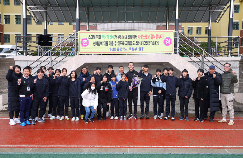 우상혁 선수는“후배 선수들의 꿈을 실현하는 데 조금이라도 힘이 된다면, 언제든 저의 재능을 함께 나눌 준비가 되어 있다. 또한, 우리 송촌중학교 후배들이 저를 통해, 꿈을 키울 수 있다면 최선을 다해 도울 것이다.”라고 모교의 후배들을 응원하는 마음을 전했다.