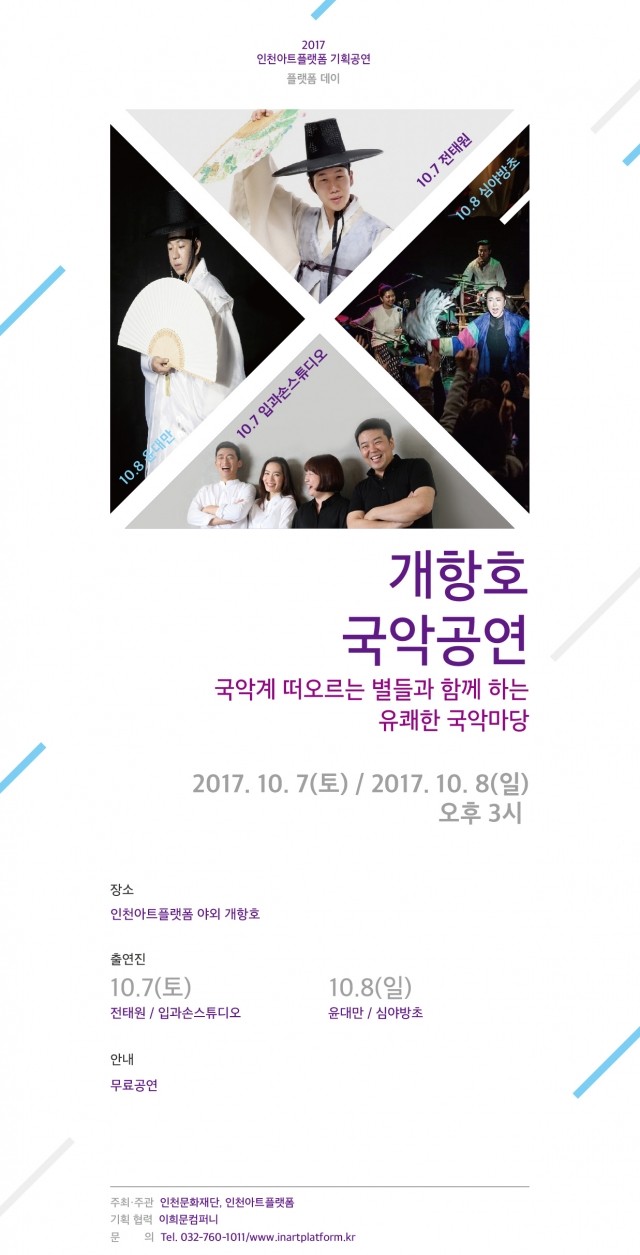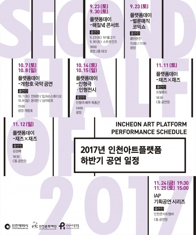 또한 아트플랫폼에서 9월 30일부터 10월 1일까지 아트마켓, 벼룩시장 등 <플랫폼 시장>이 열리고, 9월 30일 저녁 6시에 지는 노을을 바라볼 수 있는 야외 데크에서 선착순 80명과 함께 <해질녁 콘서트>가 진행된다. 10월 7일과 8일 오후 3시에는 <개항호 국악공연>도 진행된다.