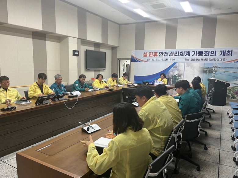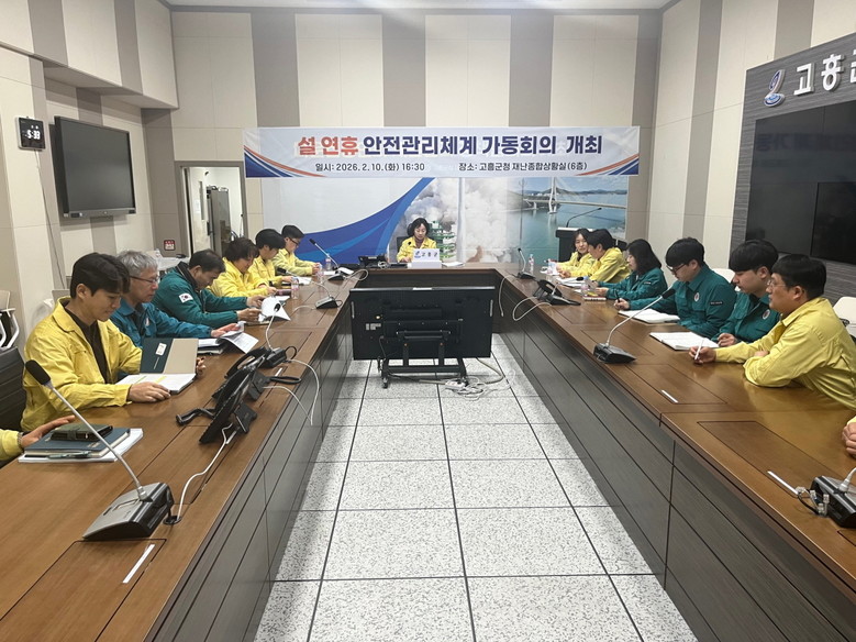 [고흥군 세계타임즈=우덕현 기자] 고흥군(군수 공영민)은 지난 10일 군청 재난종합상황실에서 ‘설 연휴 안전관리체계 가동 회의’를 개최하고, 설 연휴 기간 중 발생할 수 있는 각종 안전사고 예방과 재난 대응체계 점검에 나섰다.