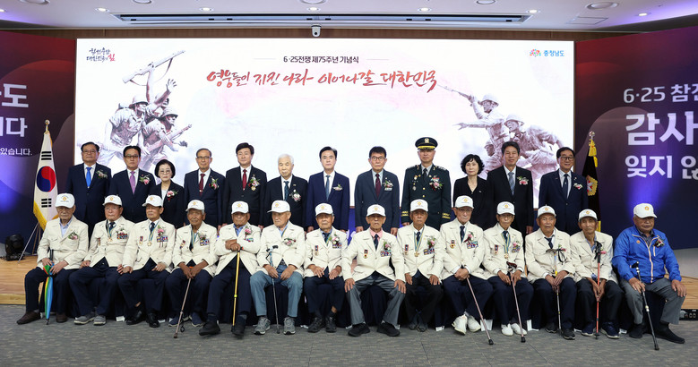 도는 25일 도청 대회의실에서 김태흠 지사를 비롯해 김지철 도교육감, 서정미 충남서부보훈지청장, 경건용(102세·1923년생) 도내 최고령 6.25참전유공자, 참전용사, 보훈단체 등 130여 명이 참석한 가운데, ‘6.25전쟁 제75주년 기념식’을 개최했다고 밝혔다.