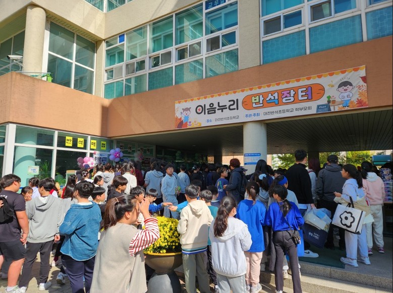 [대전 세계타임즈=이채봉 기자] 대전반석초등학교는 학부모회 주최로 10월 24일부터 25일까지 교내에서 학생, 학부모, 교사가 함께하는 ‘이음누리 반석장터’ 행사를 개최했다고 밝혔다. ‘이음누리’는 온 세상을 이어준다는 뜻의 우리말로 반석 장터를 통해 학생, 학부모, 교사를 이어준다는 의미를 담고 있다. 2, 4, 6학년과 1, 3, 5학년으로 나누어 이틀 동안 진행되었다.
