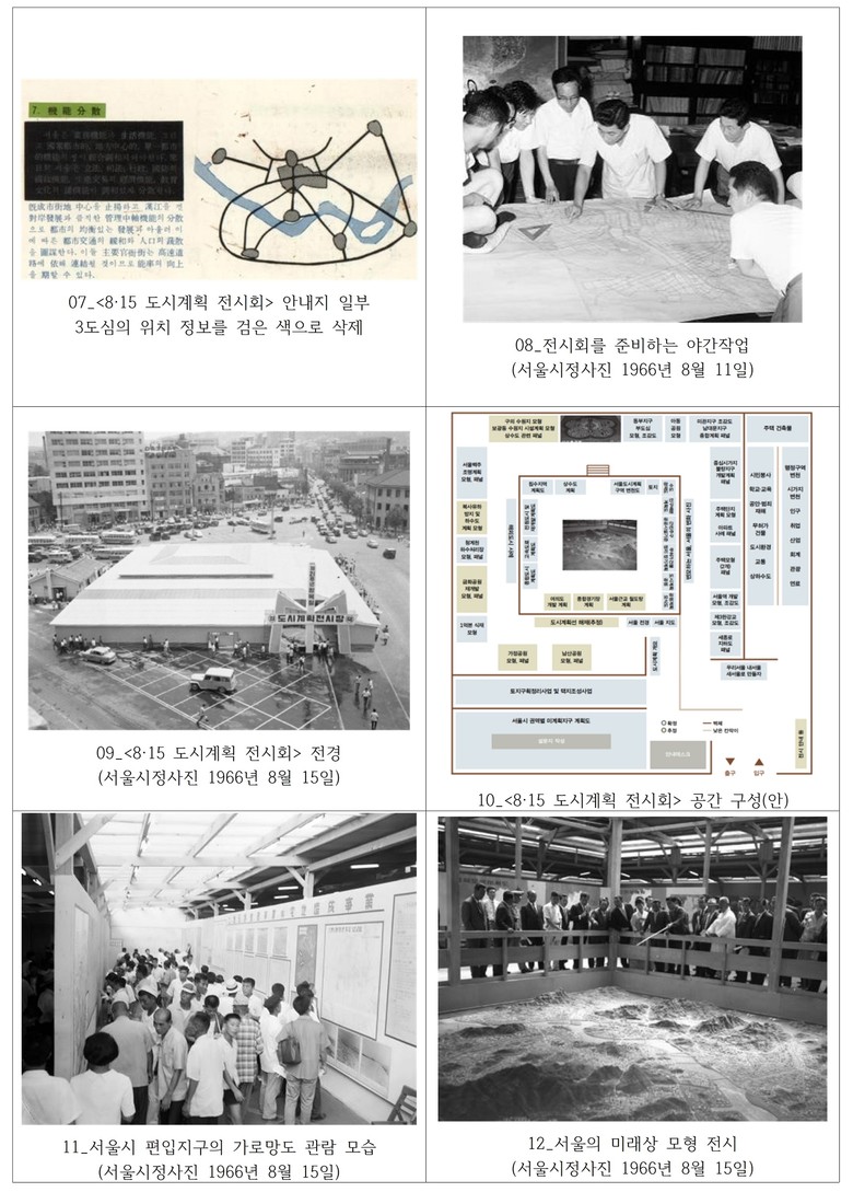 1966년 8월 15일 광복 21주년 기념 <8·15 도시계획 전시회>가 시청광장에서 개최되었다. 시민들에게 서울의 미래 비전을 전달하는 중요한 장이었으며, 도시계획에 대한 시민들의 인식을 촉진시켰다. 도시계획에 관한 전무후무한 전시회로 이번 연구를 통하여 그동안 알려지지 않은 전시의 구성과 전시공간을 재현하였다.