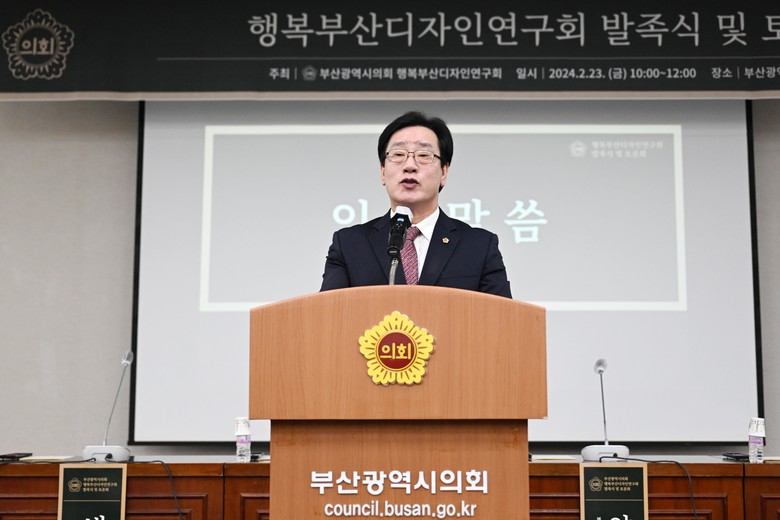 [부산 세계타임즈=이용우 기자] 부산광역시의회 의원연구단체 ‘행복부산디자인연구회(대표의원 김광명(남구4, 국민의힘))’가 주최하는 「행복부산디자인연구회 발족식 및 토론회」가 2월 23일(금) 10시, 부산시의회 대회의실에서 개최됐다.