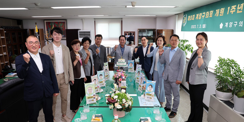 [계양구 세계타임즈=심하린 기자] 인천시 계양구의회는 지난 3일 오전 11시 구의회 의장실에서 제9대 계양구의회 개원 1주년 기념식을 개최했다.