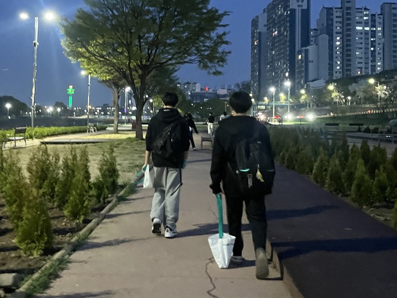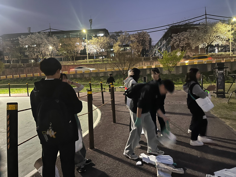 학생들은 오후 7시에 롯데백화점 앞에서 안전 교육을 받은 후 왕숙천으로 향했다. 플로깅 활동을 통해 쓰레기를 주워나가는 것뿐만 아니라, 벚꽃이 만개한 왕숙천을 구경하며 환경 보호의 중요성을 알리는 동시에 자연의 아름다움을 함께 즐길 수 있었다. 학생들은 플로깅 활동을 하며 친목을 다지고, 환경 보호에 대한 열정을 공유하는 소중한 시간을 보냈다.