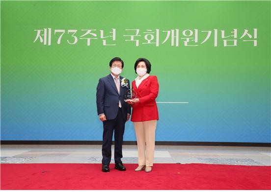 이날 조명희 의원은, 작년 7월 대표발의한 1호 법안 「기초연구진흥법」 개정안이 심사를 거쳐 우수 법률안으로 선정돼 수상의 영예를 얻게 됐다.