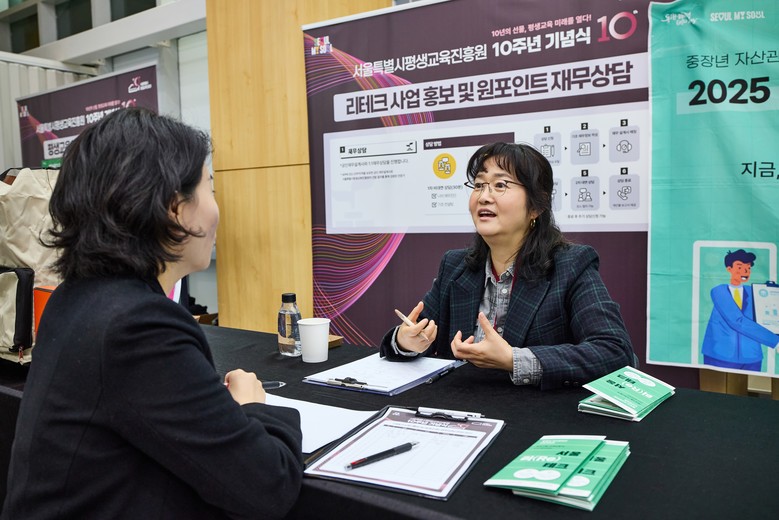 서울시민대학 중부권캠퍼스에서 중점적으로 운영하는 중장년 재무교육 및 자산관리 ‘리테크 사업’ 홍보 부스에 참여한 한 참여자는 “서울시 평생교육에서 인문교양 강좌뿐만 아니라 삶에 실질적인 도움이 되는 재무교육까지 지원받을 수 있어 좋았다”며 긍정적인 후기를 전했다.