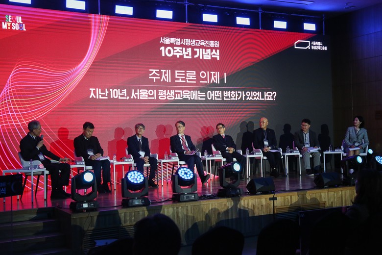 이희수 교수는 서울시평생교육진흥원 중장기 발전 방안 연구를 토대로 진흥원 10년의 성과와 향후 방향성을 제시했다. 권두승 총장은 주제 발표를 통해 서울 시민의 Ai 리터러시의 중요성과 거버넌스 강화를 함께 강조하며 서울 평생교육 정책과 현장, 성과의 연결구조 확립의 필요성을 강조했다. 김영철 서울시평생교육진흥원 초대 원장은 초고령사회 다양한 커뮤니티, 시민 사회에 스며드는 평생학습을 강조하며, 지속적으로 평생학습이 이어질 수 있도록 빈틈없는 평생학습 정책 지원을 강조했다.