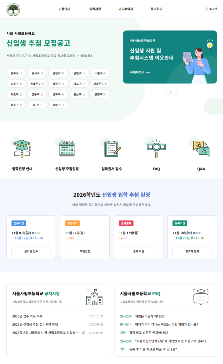 * 서울사립초연합회에서 개발·운영하는 사립초등학교 입학 통합 플랫폼