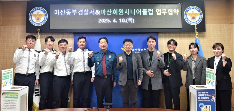 [세계타임즈]최성룡기자 = 마산동부경찰서(서장 채경덕)와 마산회원시니어클럽(관장 이철우)은 4월 10일 마산동부경찰서 4층 회의실에서 ‘지역 어르신 교통안전을 위한 협력체계 구축’을 위해 업무협약을 체결했다.
