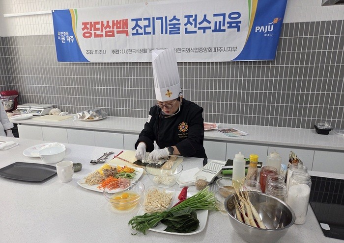 [파주시 세계타임즈=송민수 기자] 파주시는 지역 대표 특산물인 ‘장단삼백(장단콩, 파주개성인삼, 한수위쌀)’을 활용한 조리기술 전수 교육을 성공적으로 마무리했다고 밝혔다.