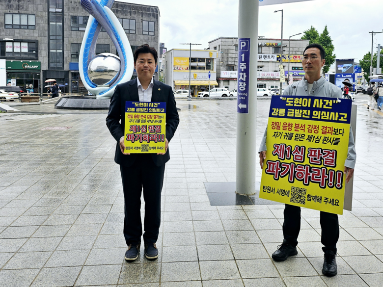 [강원도 세계타임즈=김민석 기자] 김용래 강원특별자치도의원(강릉3, 국민의힘)은 지난 24일, 강릉역 앞에서 열린 차량 급발진 사고 피해자 故이도현 군의 아버지 이상훈 씨의 1인 시위 현장을 방문하여 격려하고 서명운동에 함께 참여했다.