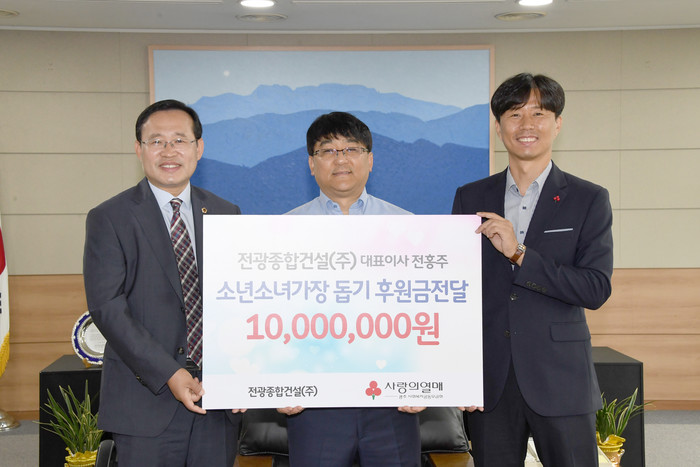 전광종합건설(주)는 코로나19 위기상황으로 인해 더욱 어려움을 겪고 있는 소년소녀가장을 돕고자 이 날 1,000만원을 사회복지공동모금회에 지정기탁 했다.